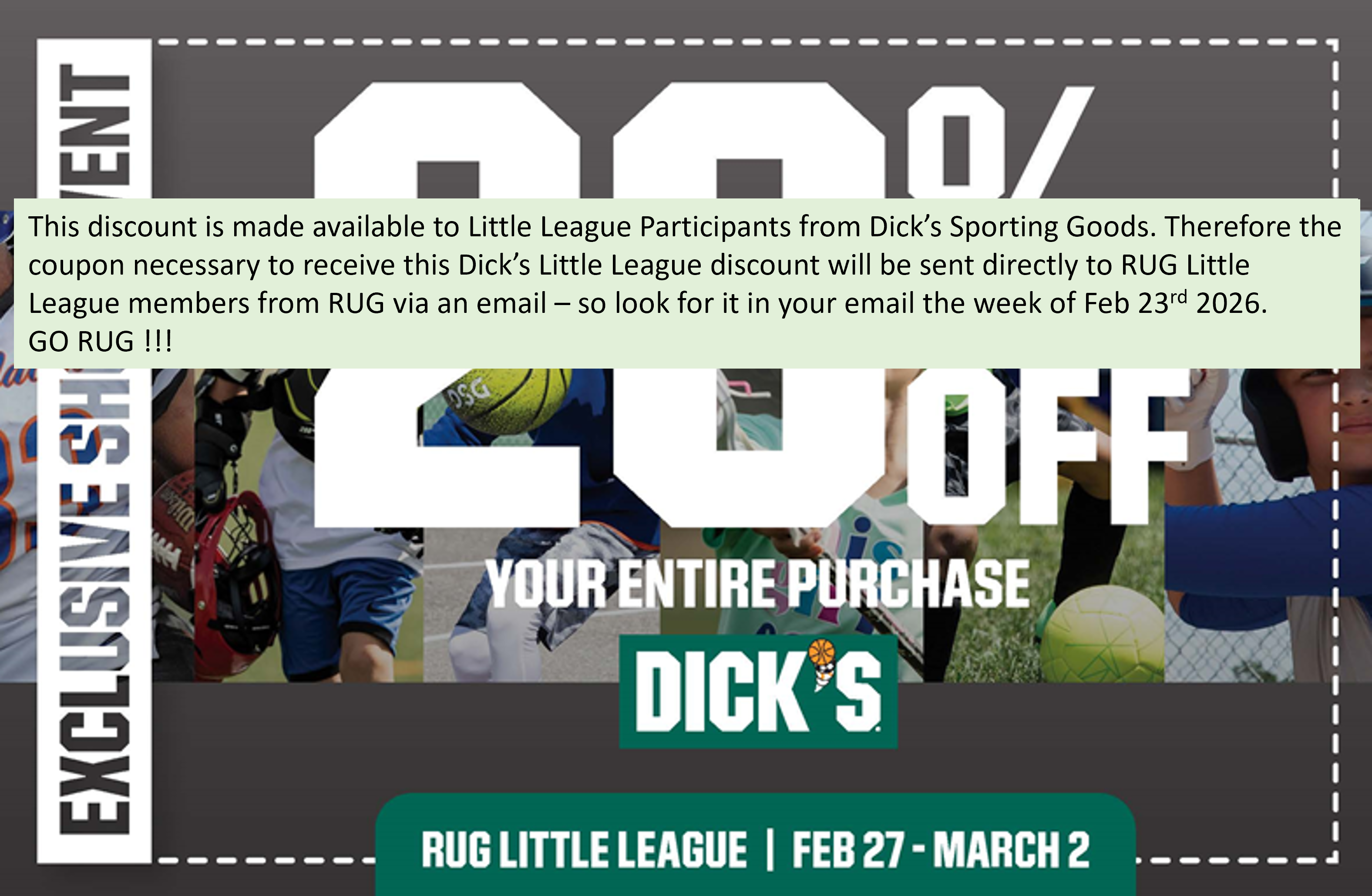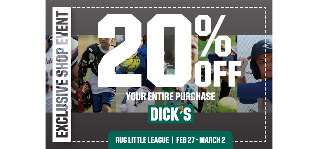 .RUG Little LeagueExclusive In-Store Event (20% off)Dick's Sporting Goods